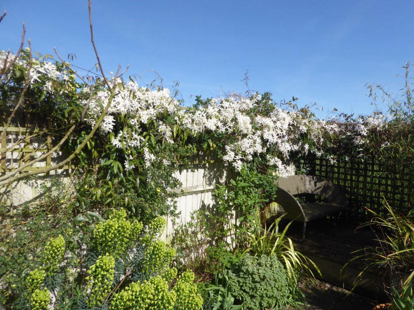 The highlights of Spring in my own garden so far have been – my Clematis armandii, which has gone completely berserk with flowers for the first time since it was planted about four years ago..