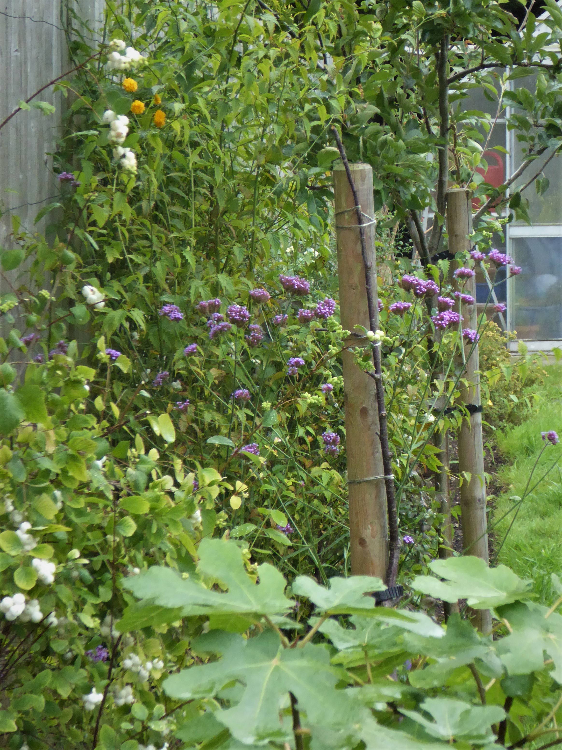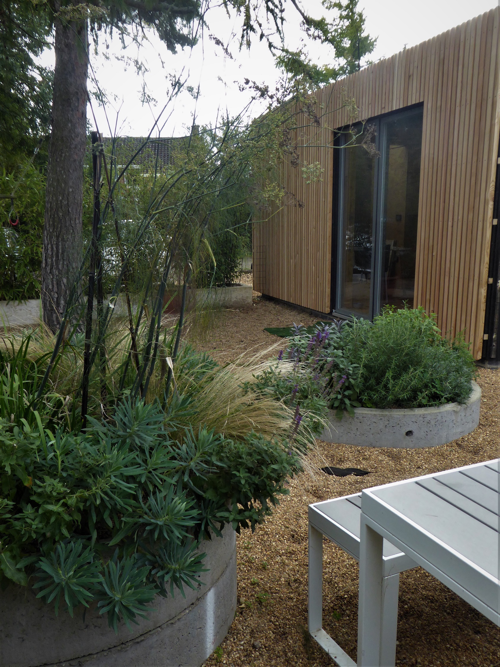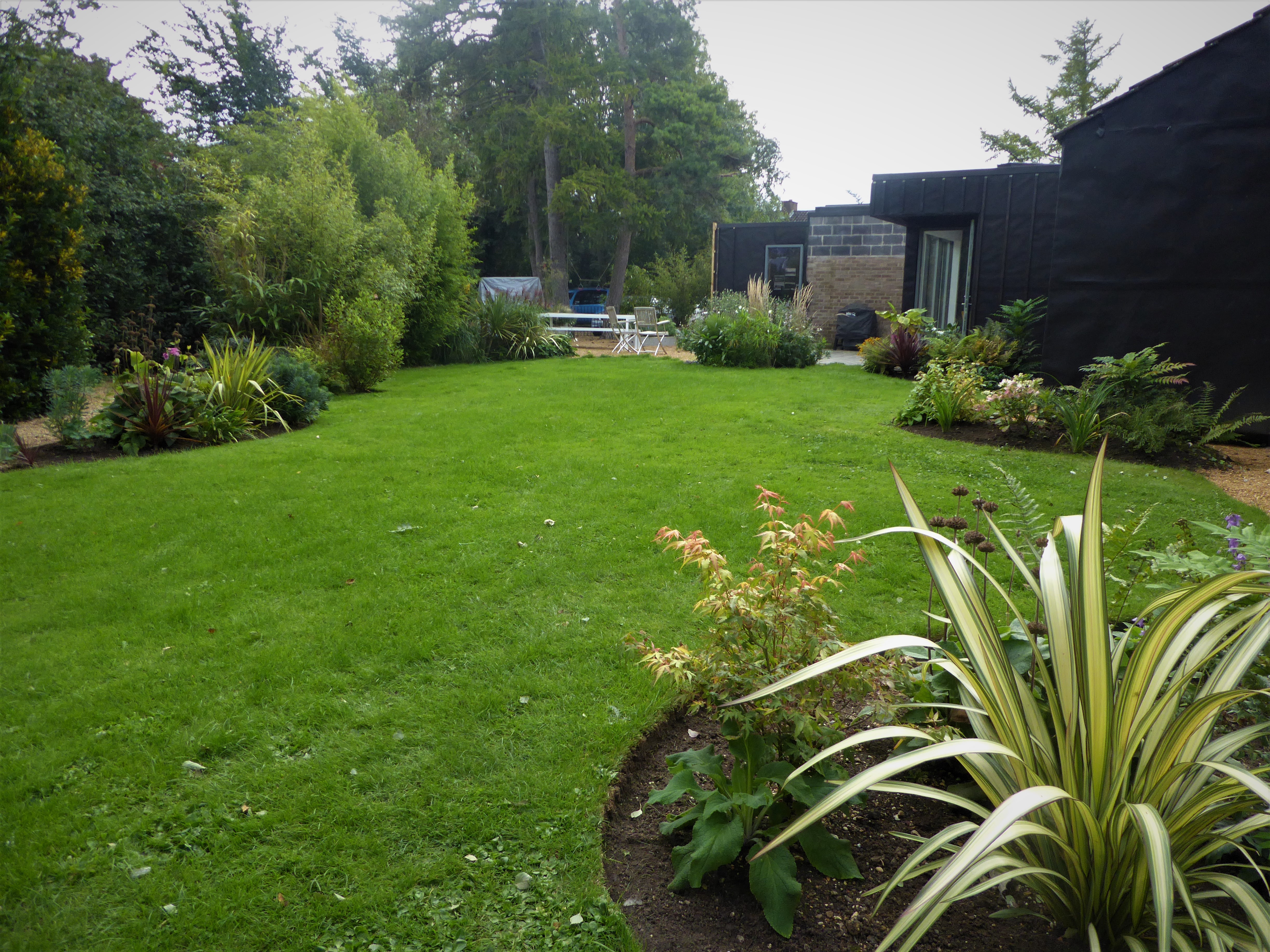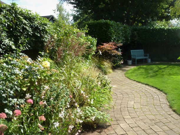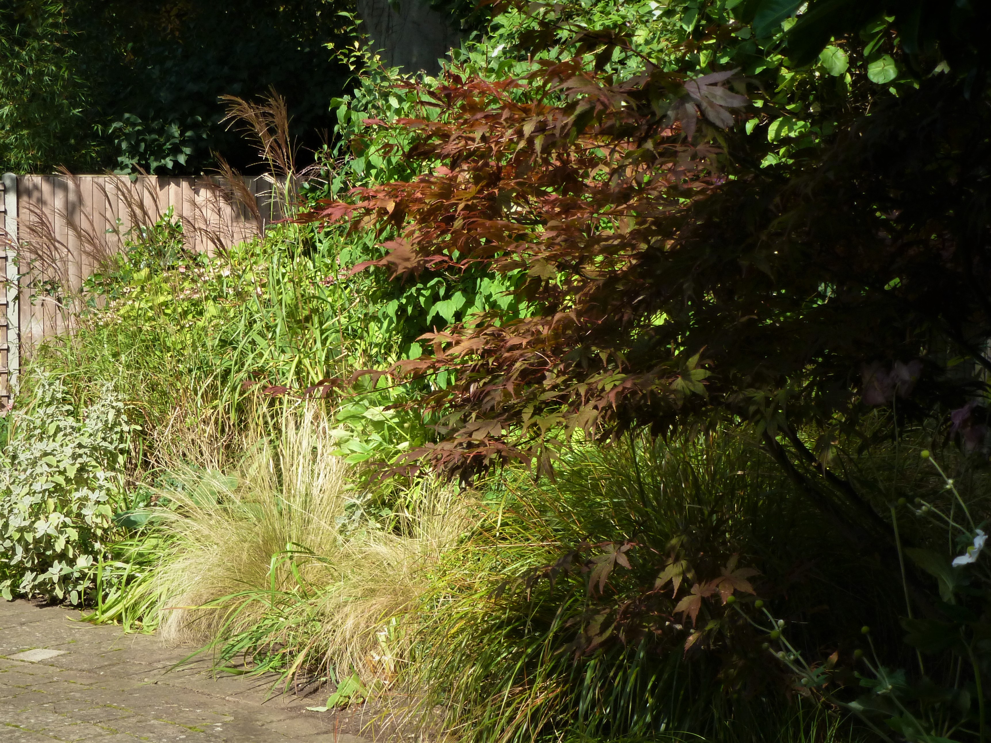 Yesterday I was tending the new grasses border planted at my clients’ garden – this one features Miscanthus sinensis, Stipa gigantea, Stipa tennuissima and Anemanthele lessoniana, interplanted with Crocosmia ‘Lucifer’, Acanthus spinosa, Phlomis fruticosa and russelinia and Hemerocallis, as well as Tulip ‘Ballerina’ for spring – a fiery border dominated by yellows and oranges and then fading into the straw and tawny shades of grasses in Autumn through to silvery Winter. And this is how it looked yesterday – above and below.