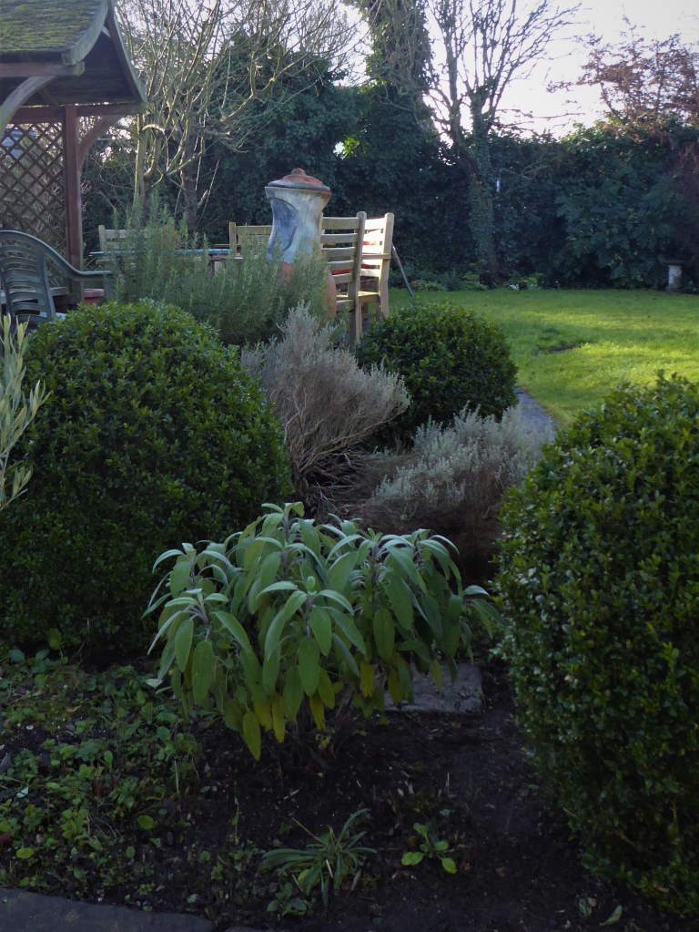 January is often a bleak month – but this is when the power of evergreen plants is so heartwarming – in my own garden my bamboo, Yukka, Euphorbia characias, Coronilla, Clematis armandii, box spheres and my Phormium are all giving plenty of evergreen to power through the cold and grey of the New Year weather. This is the view from my sitting room window taken through the glass on a bright day last week.