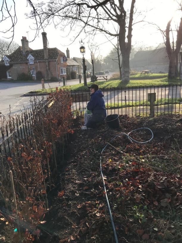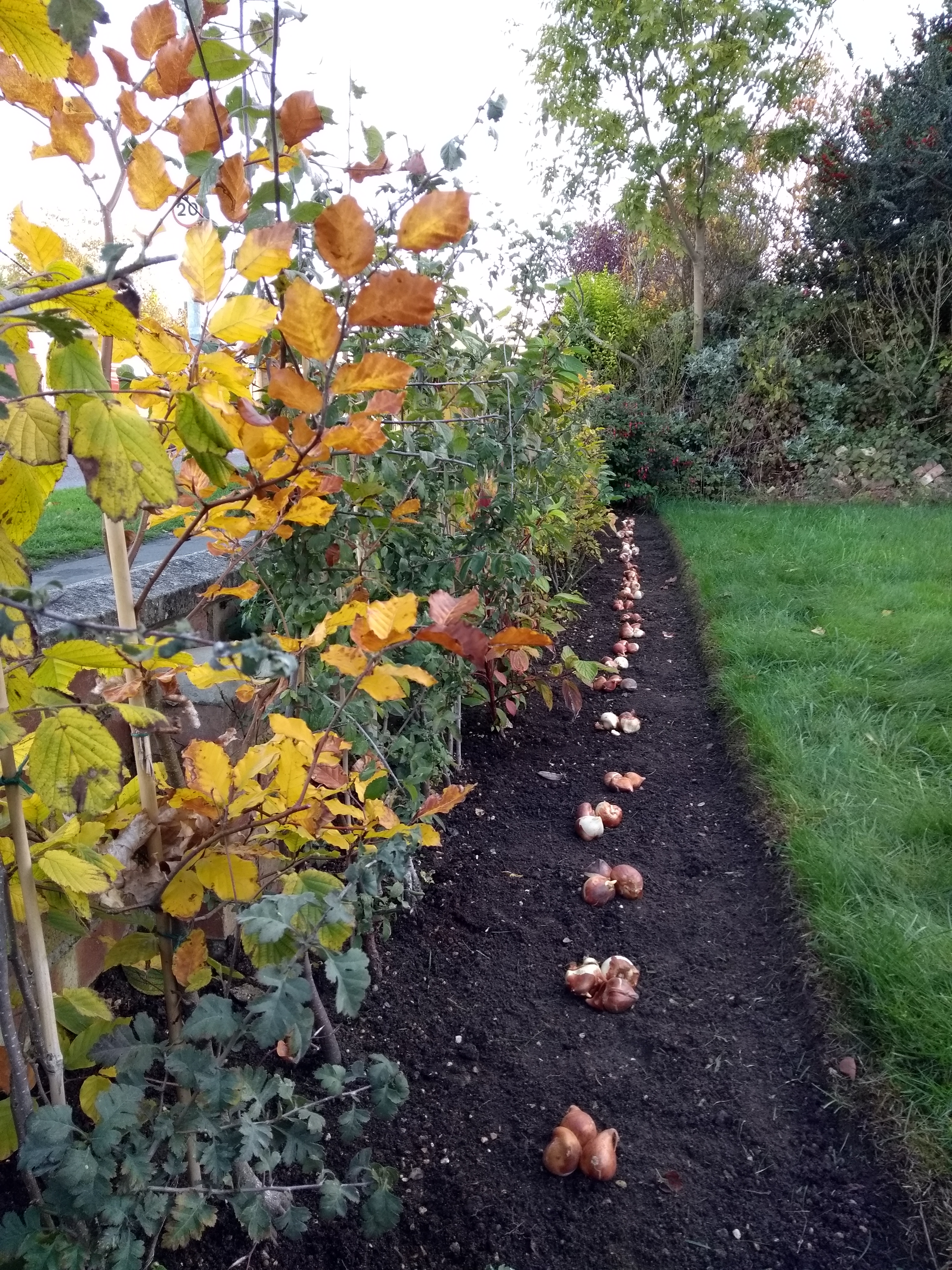 (Above) Tulips being added to the mixed native hedge planted last November – coming on nicely!