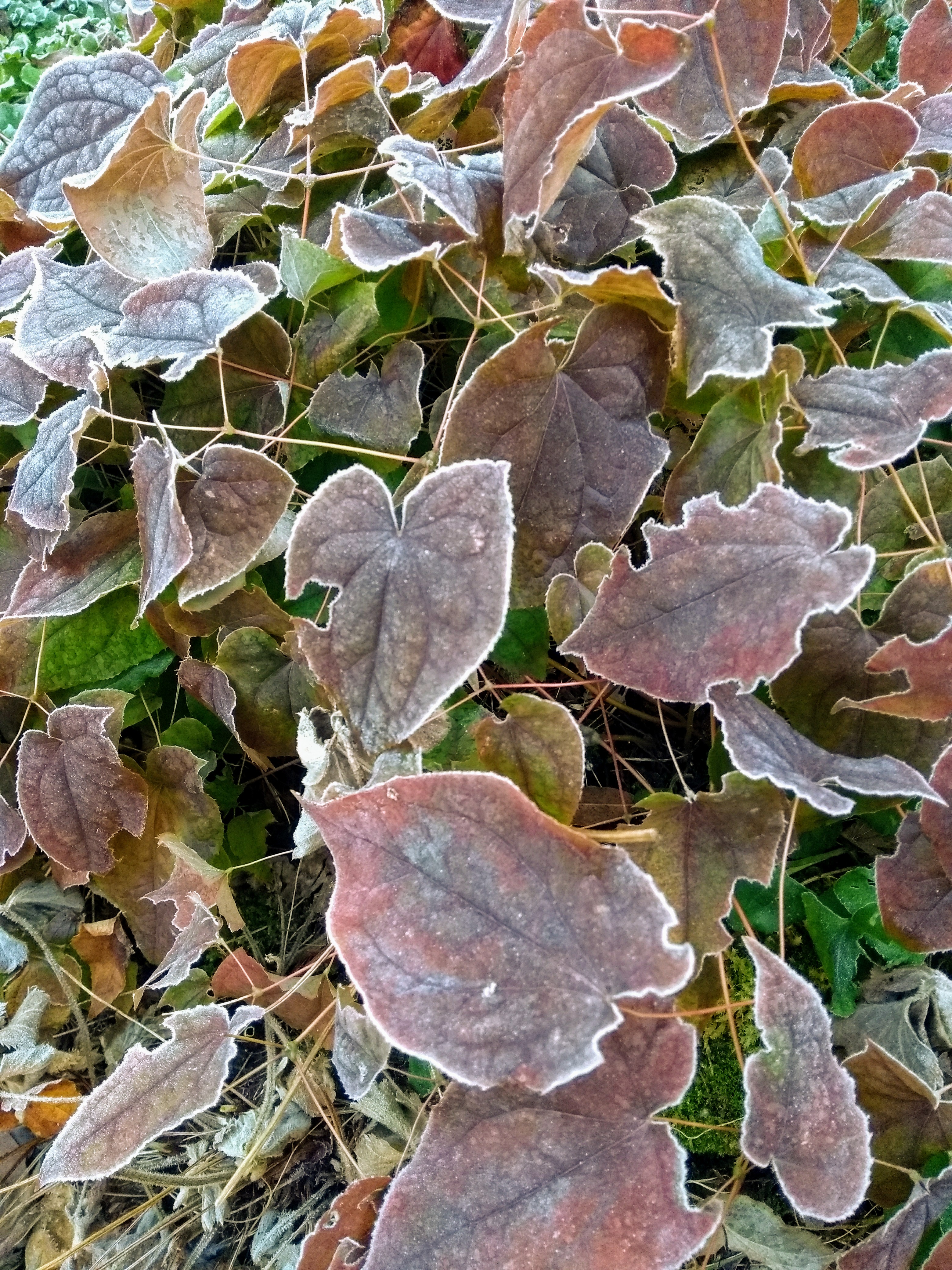 Perfect frosting edging to my Epimediums leaves in my garden….