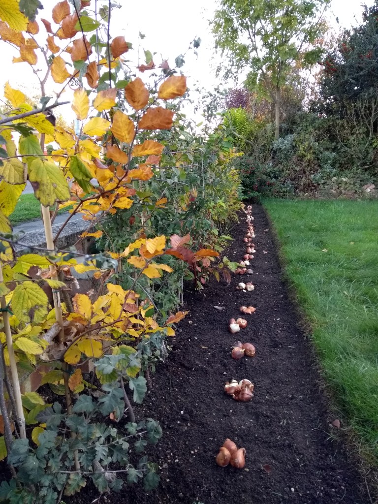 New hedge planted in November 2017 with bulbs about to be planted November 2018 –