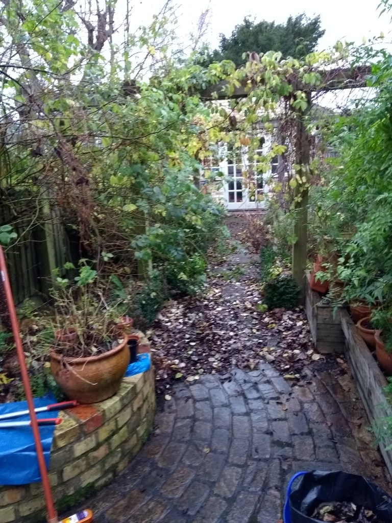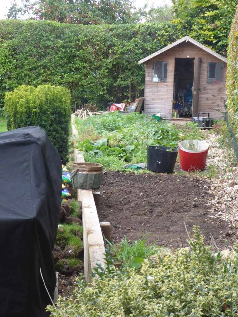 Before (Dec 2018 on arrival) – bindweed, overgrown chaos, slug-ridden and neglected…..