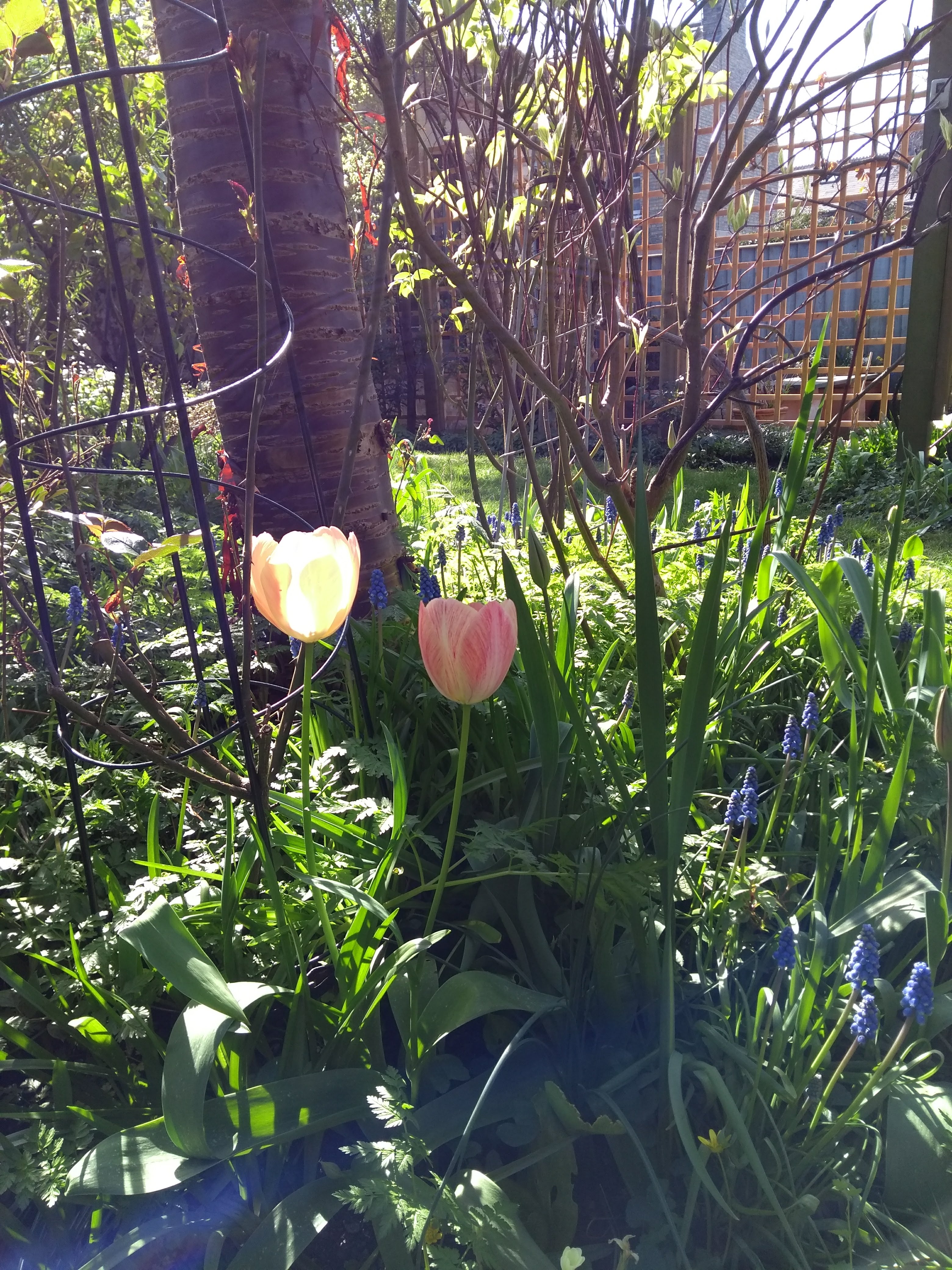 Tulip time was just starting – her photographed at another client’s garden backed by the morning sun.
