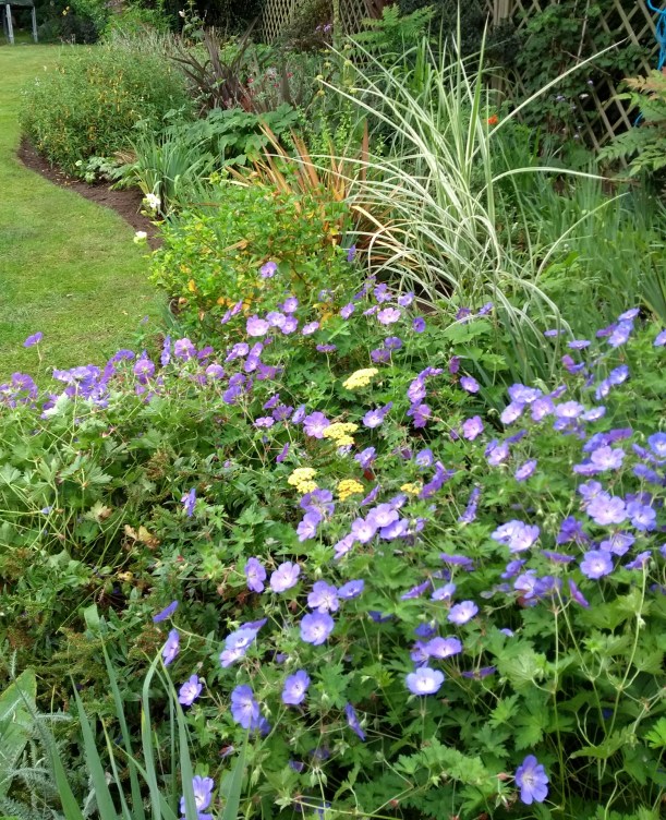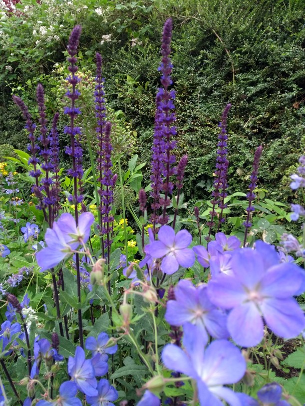 And the border sweeps on to become a south-facing border featuring Salvia cardonna and Geranium ‘Rozanne’.